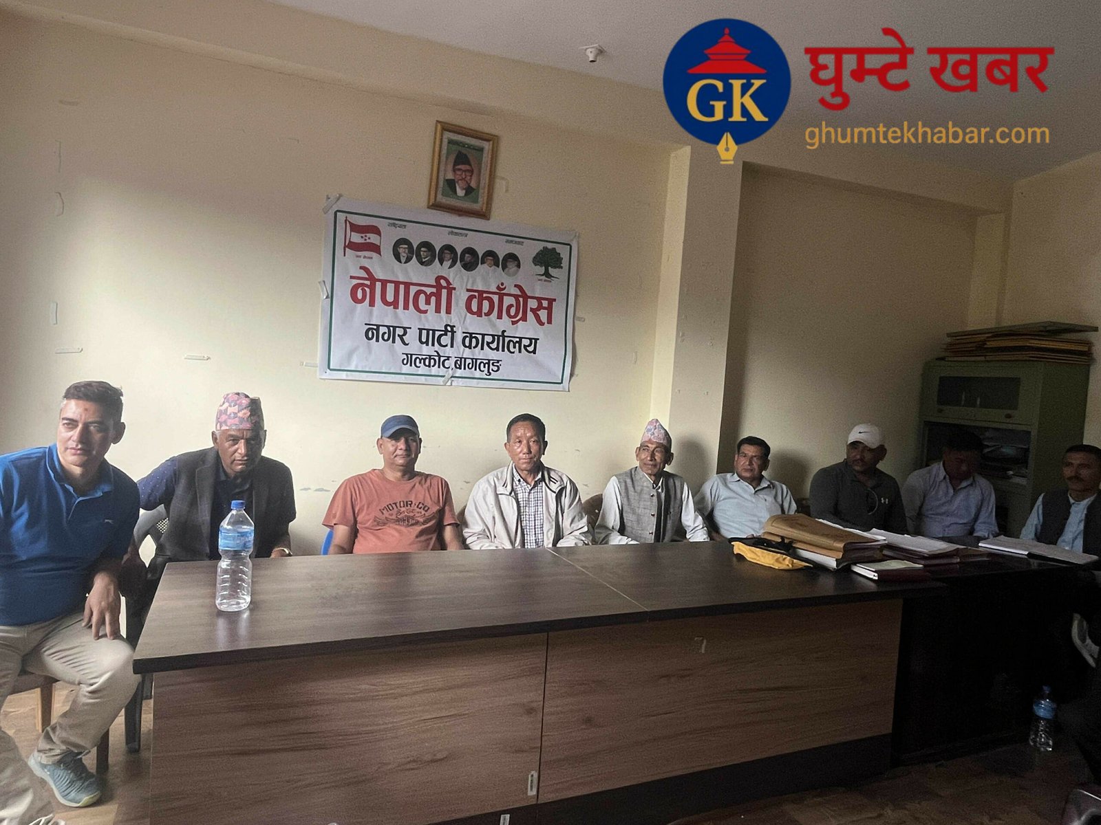 गलकोट नगरपालिका–३ हटियामा नेपाली काँग्रेस नगर कार्य समितिको बैठक तथा छलफल कार्यक्रम सम्पन्न भएको छ। नगर पार्टी कार्यालय हटियामा भएको कार्यक्रममा नगर कार्य समितिका सभापति विरजंङ भण्डारीले सभापतित्व गर्नुभयो।